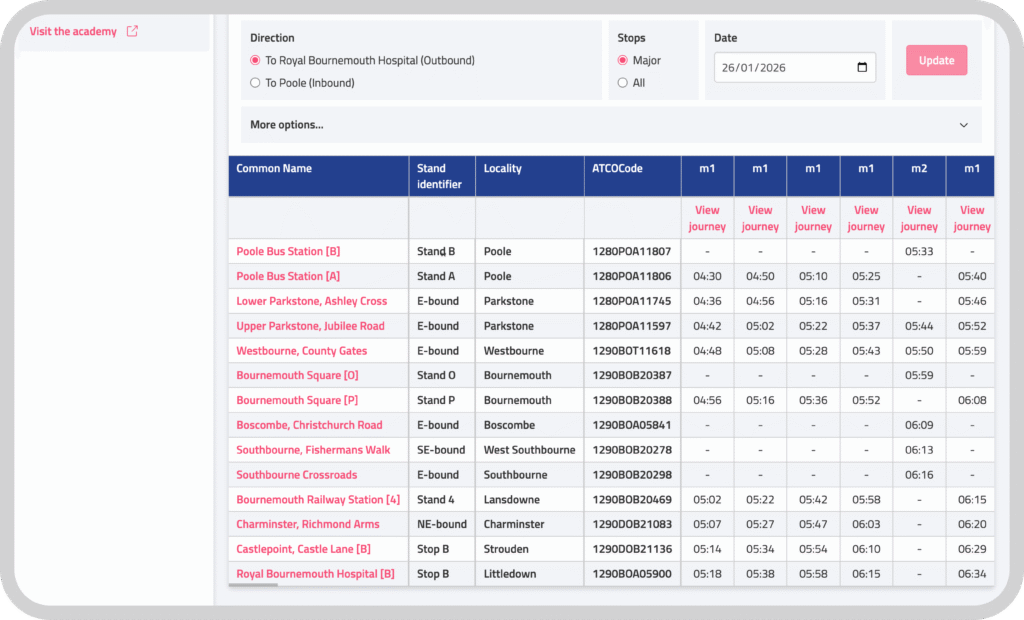 The stop attributes are derived from a combination of your uploaded TransXChange and NaPTAN. To make it easy to preview the data, we have updated Passenger Cloud to include a stand identifier and locality as separate columns when previewing a Timetable in a dataset. We know that in some cases, more information might have been added to the ‘Common Name’ by upstream processes, meaning that you might not want to enable this feature because it will result in duplicate information being presented to customers.