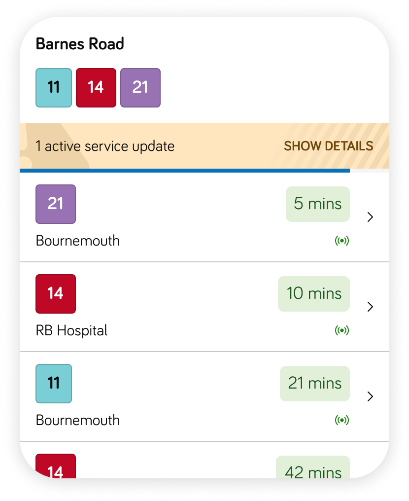 - Improved Accuracy: Disruptions on a service won’t necessarily apply to every individual journey. Removing the icon from individual departures prevents users from assuming a specific bus is disrupted when it may not be.