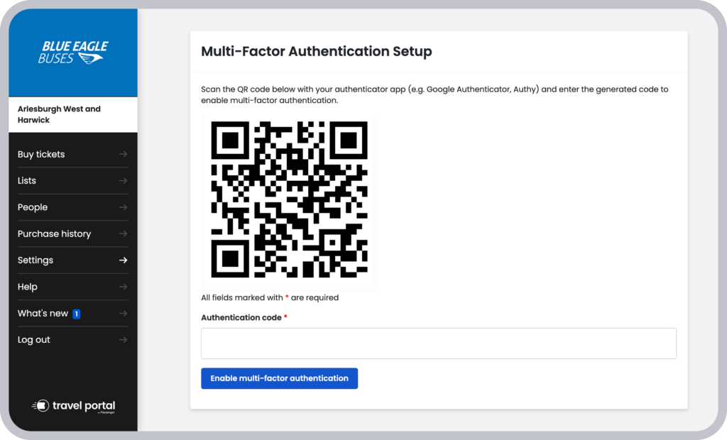 We are pleased to announce that Multi-Factor Authentication (MFA) is now available for all Passenger Travel Portal business users. This update helps third-party partners to meet stricter data protection requirements and directly supports organisations in achieving or maintaining specific accreditation, such as Cyber Essentials Plus.